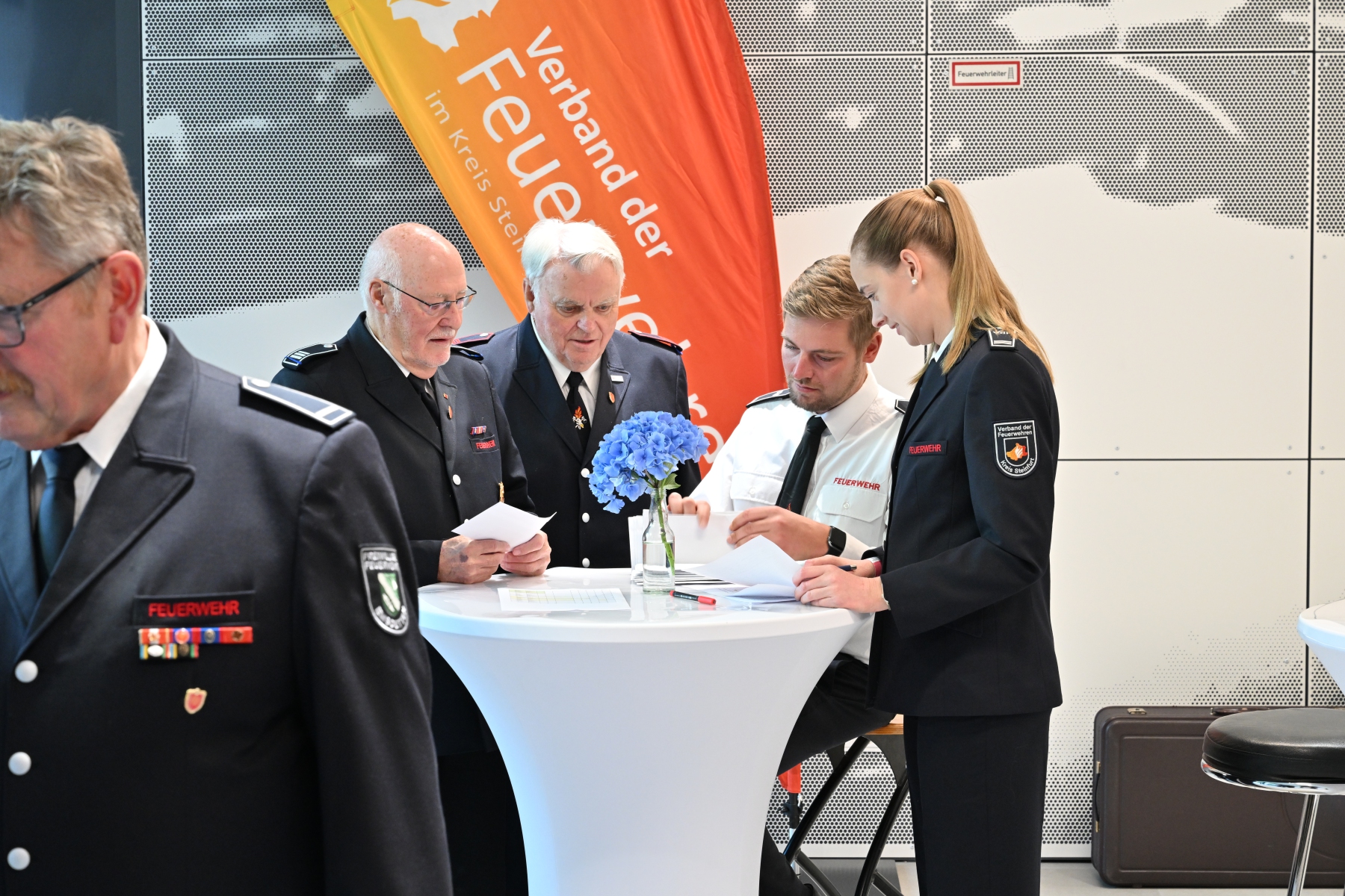 Emsdetten/Kreis Steinfurt  Ein halbes Jahrhundert gelebte Kameradschaft und Einsatzbereitschaft: Der Verband der Feuerwehren im Kreis Steinfurt (VdF Steinfurt) feierte sein 50-jähriges Bestehen mit einem großen Jubiläumsfest in der Stroetmanns Fabrik in Emsdetten. Zahlreiche Gäste, darunter Feuerwehrkameradinnen und -kameraden aus dem gesamten Kreisgebiet, Vertreter aus dem Regierungsbezirk und dem Land NRW, Landrat Dr. Martin Sommer und viele Bürgermeister nahmen an der Feier teil und würdigten die herausragende Arbeit des Verbandes. Der erste Vorsitzende des VdF Steinfurt wurde im Rahmen der Feierlichkeiten mit dem „goldenen Ehrenkreuz“ des Deutschen Feuerwehrverbandes aus den Händen von Bezirksbrandmeister Oliver Wegener ausgezeichnet. Der höchsten Auszeichnung der Feuerwehren in Deutschland.