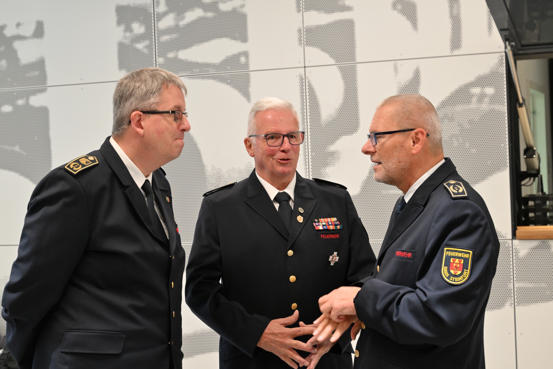 Emsdetten/Kreis Steinfurt  Ein halbes Jahrhundert gelebte Kameradschaft und Einsatzbereitschaft: Der Verband der Feuerwehren im Kreis Steinfurt (VdF Steinfurt) feierte sein 50-jähriges Bestehen mit einem großen Jubiläumsfest in der Stroetmanns Fabrik in Emsdetten. Zahlreiche Gäste, darunter Feuerwehrkameradinnen und -kameraden aus dem gesamten Kreisgebiet, Vertreter aus dem Regierungsbezirk und dem Land NRW, Landrat Dr. Martin Sommer und viele Bürgermeister nahmen an der Feier teil und würdigten die herausragende Arbeit des Verbandes. Der erste Vorsitzende des VdF Steinfurt wurde im Rahmen der Feierlichkeiten mit dem „goldenen Ehrenkreuz“ des Deutschen Feuerwehrverbandes aus den Händen von Bezirksbrandmeister Oliver Wegener ausgezeichnet. Der höchsten Auszeichnung der Feuerwehren in Deutschland.