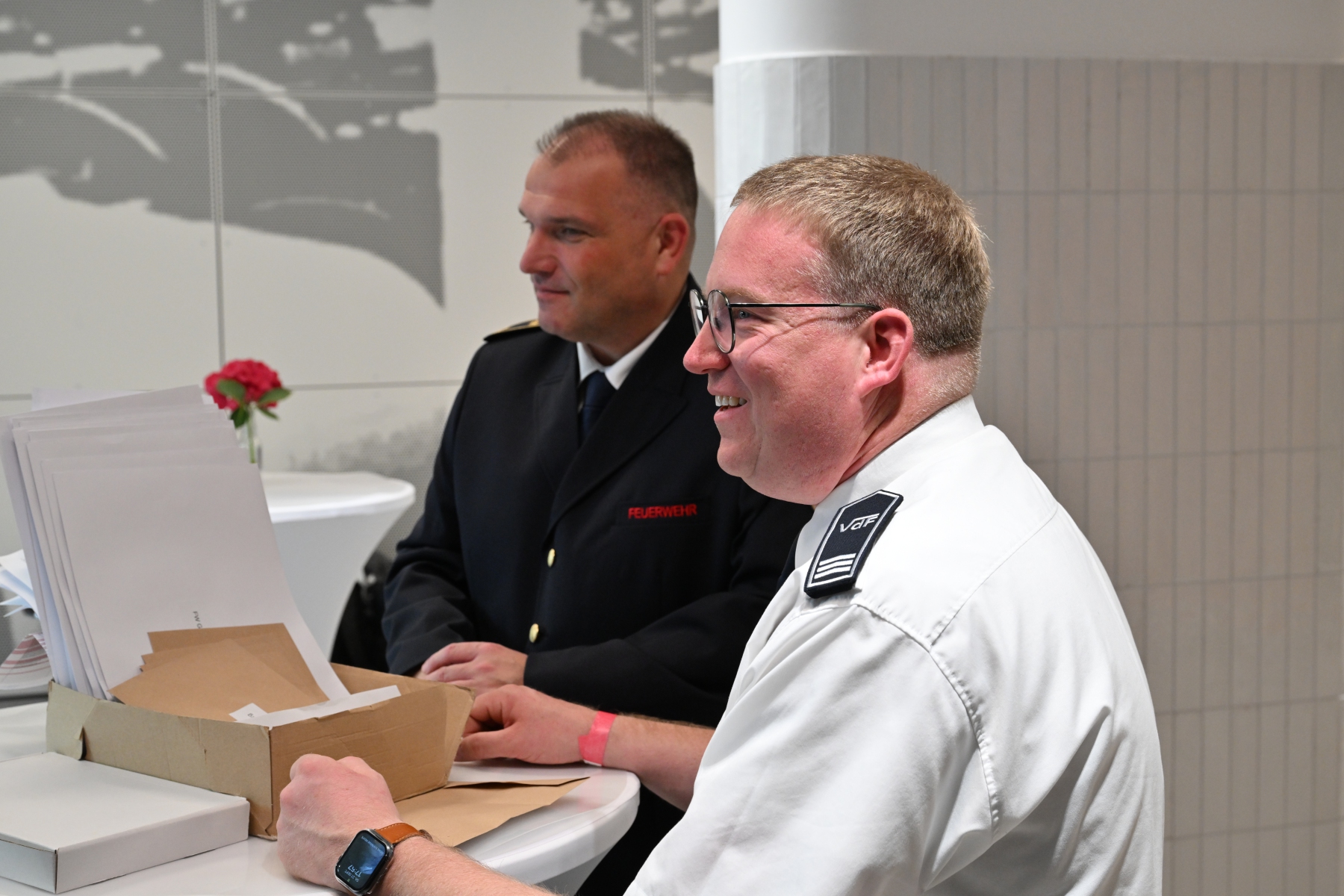 In ihren Grußworten würdigten Bezirksbrandmeister Oliver Wegener und Kreisbrandmeister Raphael-Ralph Meier das Engagement der mehr als 5300 Mitglieder, davon rund 3300 in der Einsatzabteilung. Der Verband, einer der größten in Nordrhein-Westfalen, sei ein Paradebeispiel für gelebte Kameradschaft und erfolgreiche Zusammenarbeit – der Mensch stehe hier im Mittelpunkt. Besonders hoben sie die Bedeutung des Verbandes für die Ausbildung sowie die Förderung der Kinder- und Jugendfeuerwehren hervor. Das Jubiläum sei ein sichtbares Zeichen von Zivilcourage, Leistungsfähigkeit und Zusammenhalt – und zugleich ein Ansporn für die Zukunft.