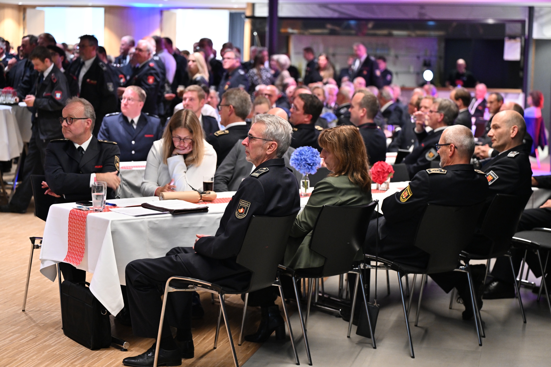 Eine besondere Ehrung erlebte Manfred Kleine Niesse – nach seinen Grußworten: Er wurde von seinem Stellvertreter Guido Roters mit dem Feuerwehr-Ehrenkreuz in Gold des Deutschen Feuerwehrverbandes überrascht. Mit dieser hohen Ehrung würdigte der Verband sein langjähriges, herausragendes Engagement und seine Verdienste um die Feuerwehren im Kreis Steinfurt. Sichtlich bewegt nahm Kleine Niesse die Auszeichnung entgegen – ein Moment, der von großem Applaus und Anerkennung der anwesenden Gäste begleitet wurde. -fm-