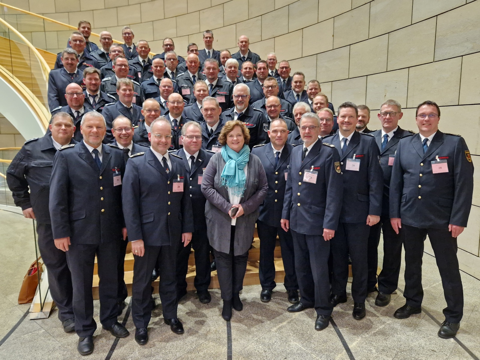 Ein zentraler Programmpunkt war das Gespräch mit der Landtagsabgeordneten Andrea Stullich, die sich ausführlich Zeit für die Anliegen und Perspektiven der Feuerwehren nahm. Ein besonderes Highlight war der persönliche Besuch von Innenminister Herbert Reul, der sich ebenfalls Zeit nahm, um mit den Vertreterinnen und Vertretern der Feuerwehren ins Gespräch zu kommen.