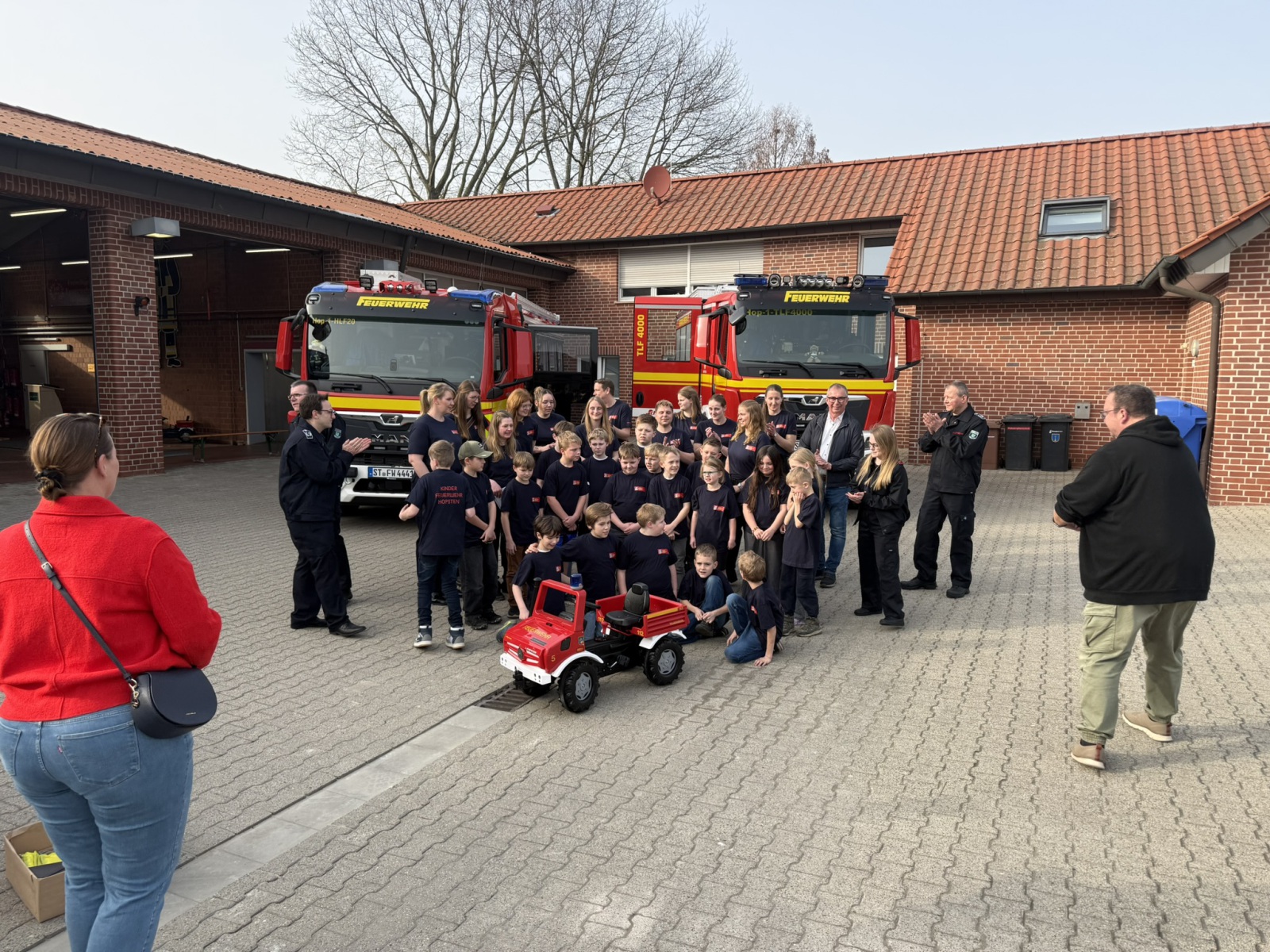 Hopsten/Kreis Steinfurt  Die Freiwillige Feuerwehr Hopsten hat heute offiziell eine Kinderfeuerwehr gegründet. Im Rahmen einer Gründungsfeier begrüßte der Leiter der Feuerwehr, Ralf Drees, insgesamt 21 Kinder sowie 14 Betreuerinnen und Betreuer, die künftig die neue Kinderfeuerwehrabteilung bilden. Zur Kinderfeuerwehrwartin wurde Silke Jäger ernannt. Gemeinsam mit ihrem Betreuerteam wird sie die Aufgabe übernehmen, den Nachwuchs spielerisch an die Themen Feuerwehr, Teamarbeit und Sicherheit heranzuführen.