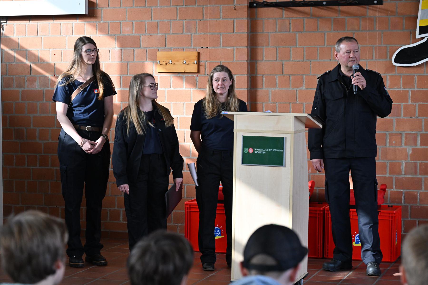 Hopsten/Kreis Steinfurt  Die Freiwillige Feuerwehr Hopsten hat heute offiziell eine Kinderfeuerwehr gegründet. Im Rahmen einer Gründungsfeier begrüßte der Leiter der Feuerwehr, Ralf Drees, insgesamt 21 Kinder sowie 14 Betreuerinnen und Betreuer, die künftig die neue Kinderfeuerwehrabteilung bilden. Zur Kinderfeuerwehrwartin wurde Silke Jäger ernannt. Gemeinsam mit ihrem Betreuerteam wird sie die Aufgabe übernehmen, den Nachwuchs spielerisch an die Themen Feuerwehr, Teamarbeit und Sicherheit heranzuführen.