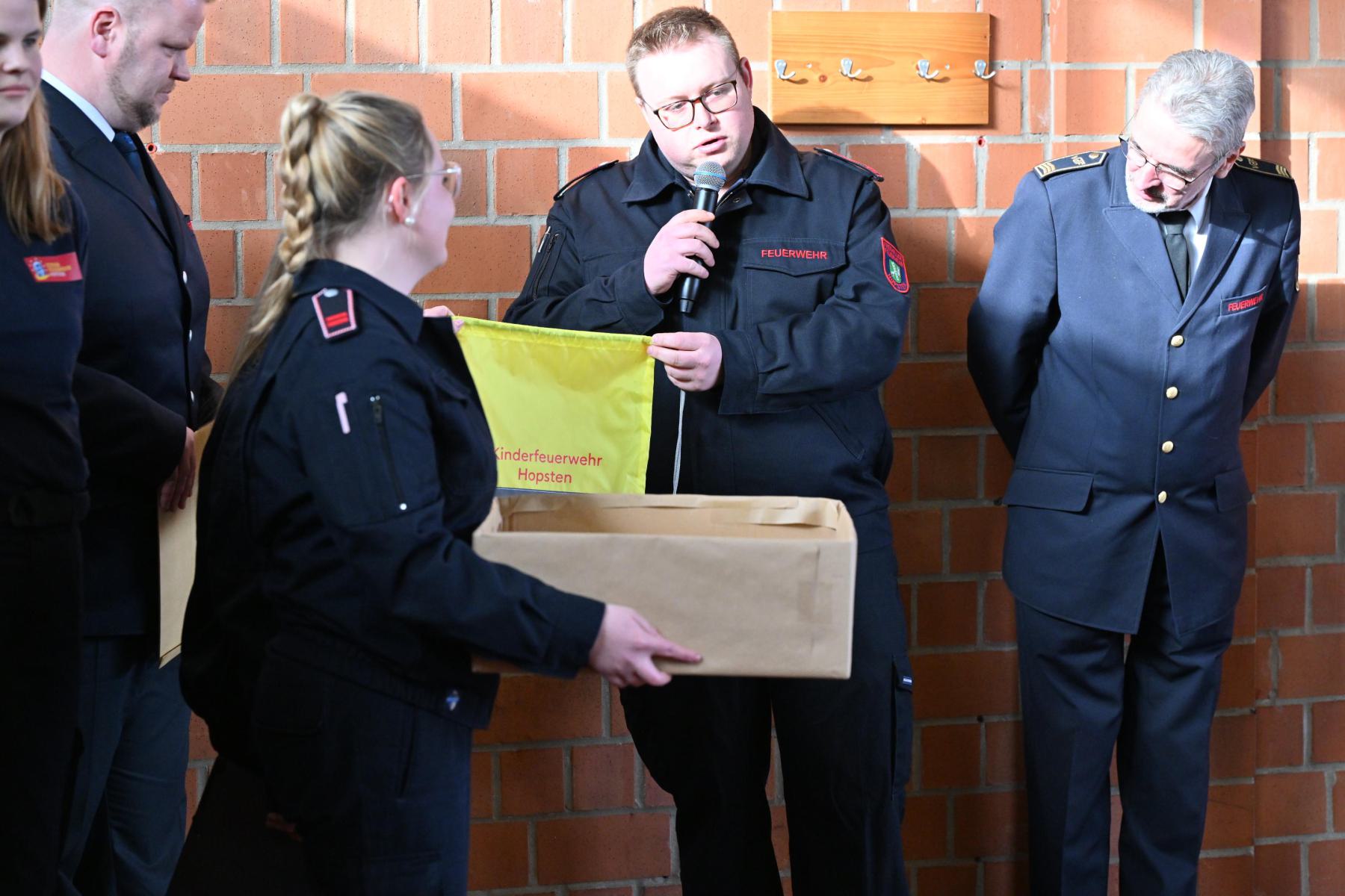 Mit der Gründung der Kinderfeuerwehr setzt die Feuerwehr Hopsten ein deutliches Zeichen für eine nachhaltige Nachwuchsarbeit und stärkt damit langfristig die Einsatzbereitschaft der Feuerwehr. Die Kinderfeuerwehr Hopsten ist die siebte Gruppe im Kreis Steinfurt. Der Verband der Feuerwehren in NRW unterstützt die Arbeit der Kinderfeuerwehren vor Ort und stellte eine umfangreiche Grundausrüstung zur Verfügung. -fm-