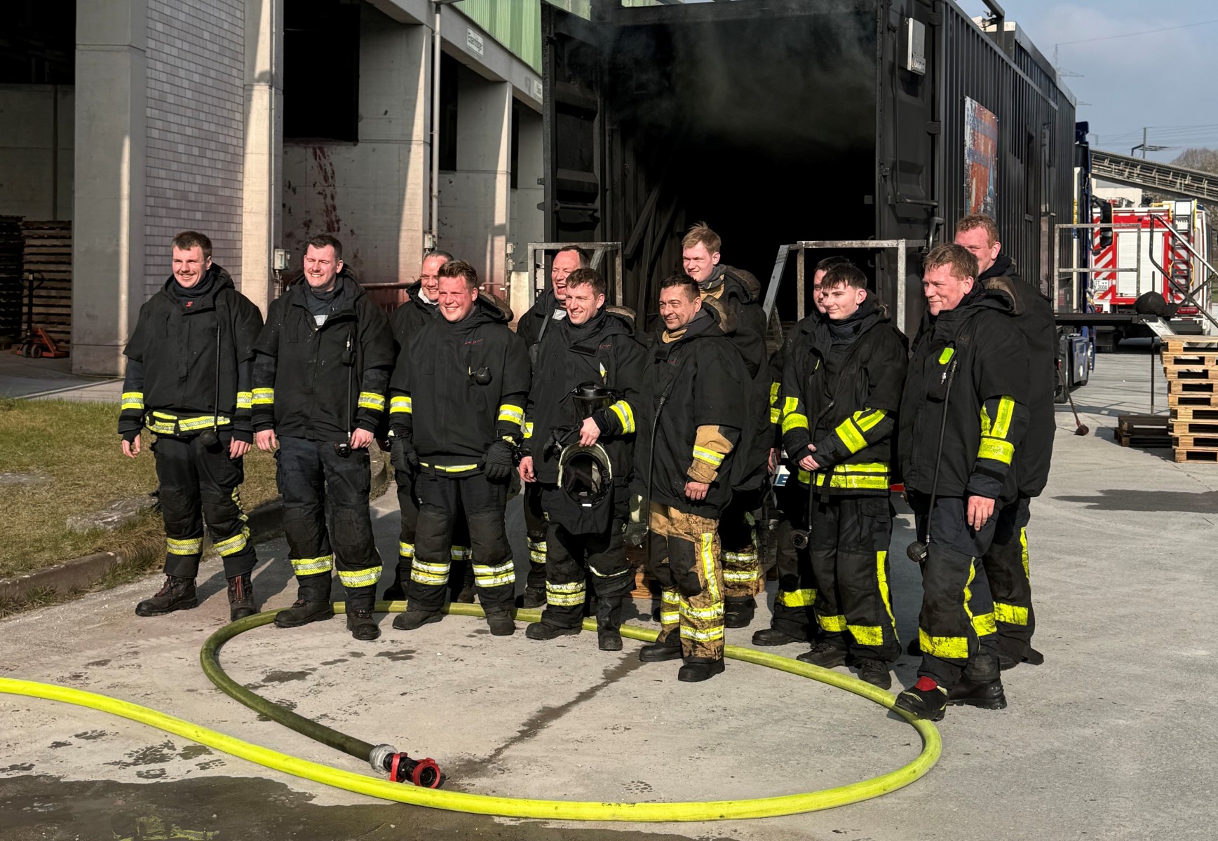 Lengerich / Kreis Steinfurt  Am Freitag (20.03.2026) und Samstag (21.03.2026) fand auf dem Gelände des Zementwerkes Dyckerhoff in Lengerich an der Lienener Straße eine umfangreiche Realbrandausbildung für die Feuerwehren aus dem Kreis Steinfurt statt. Insgesamt nahmen 15 Feuerwehren mit 96 Kameradinnen und Kameraden an dieser außergewöhnlichen Ausbildungseinheit teil. Die Delta Safety&Protection GmbH aus Sulingen bot an diesen beiden Tagen die Möglichkeit, mit Hilfe einen Realbrandcontainer eines praxisnahe Ausbildungsmaßnahmen durchzuführen.